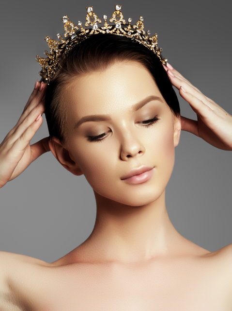 ゴールドやシルバーの金属パーツが目を引き、都会的で洗練された雰囲気に。タイトなまとめ髪やスレンダードレスと組み合わせると、写真全体がスタイリッシュになります。